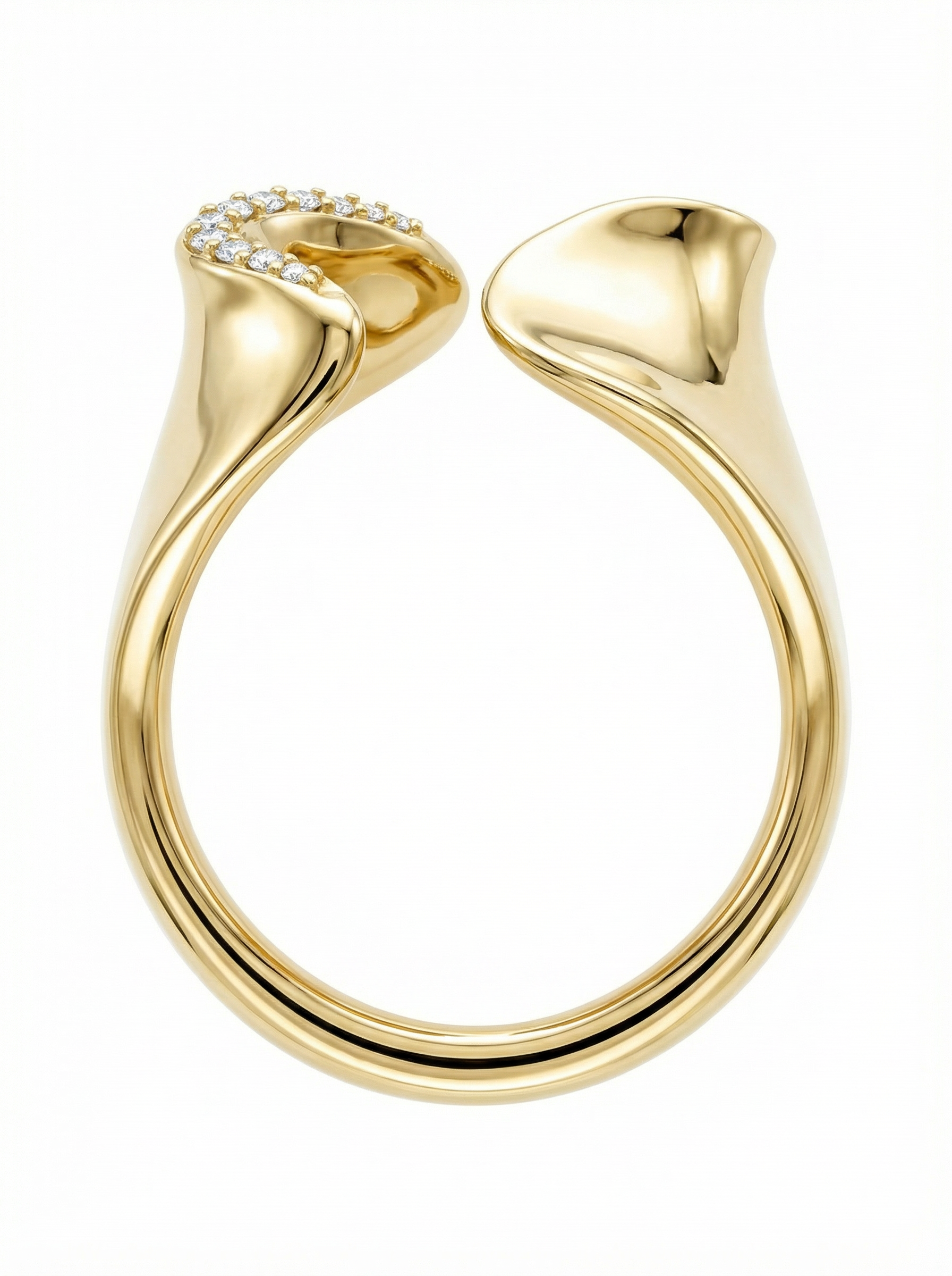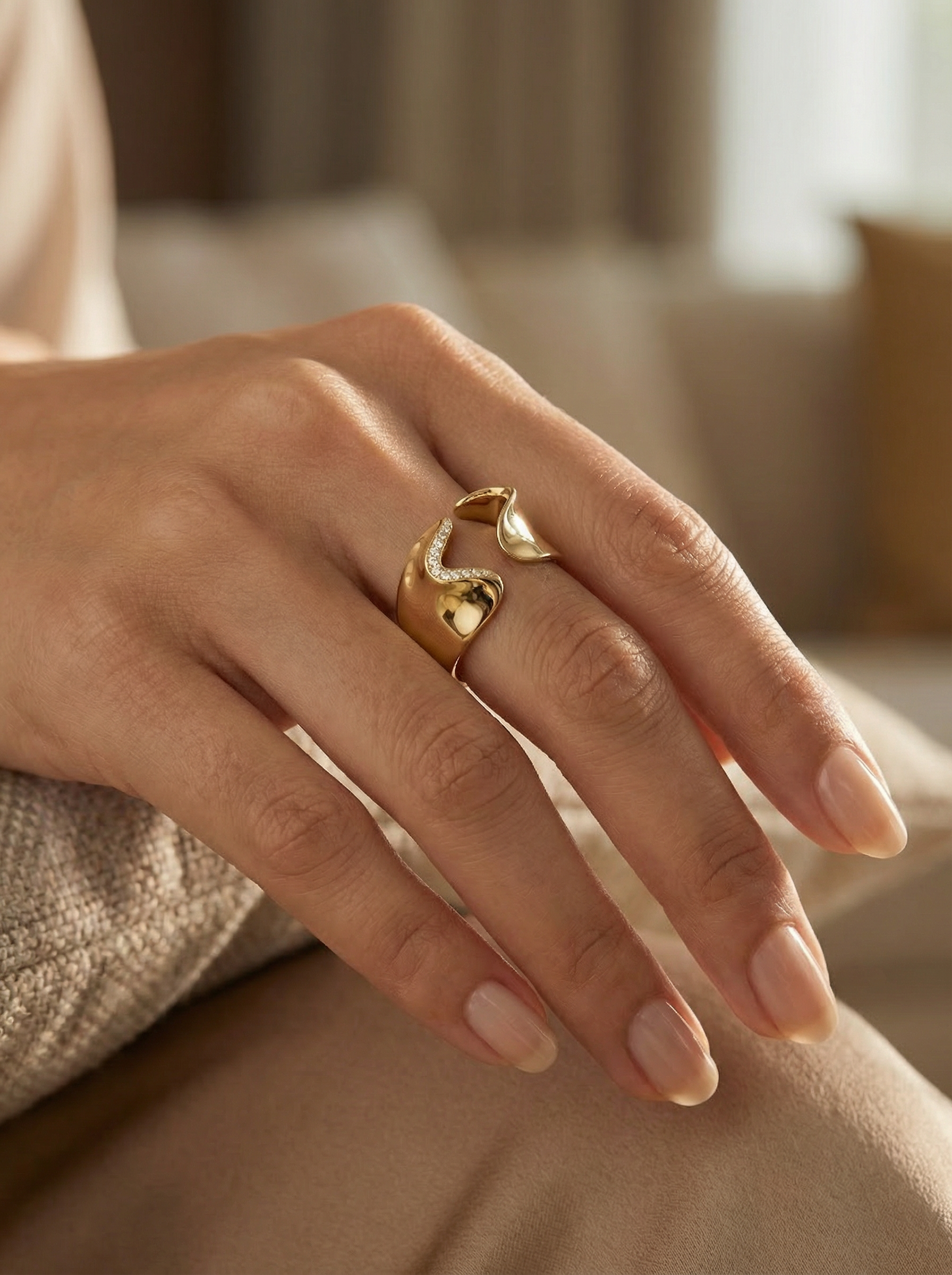 Crafted in premium yellow gold, finished with a smooth, high-polish surface that enhances the sculptural form of the design. The metal is treated with a durable, anti-tarnish coating to ensure long-lasting shine, strength, and everyday wearability.