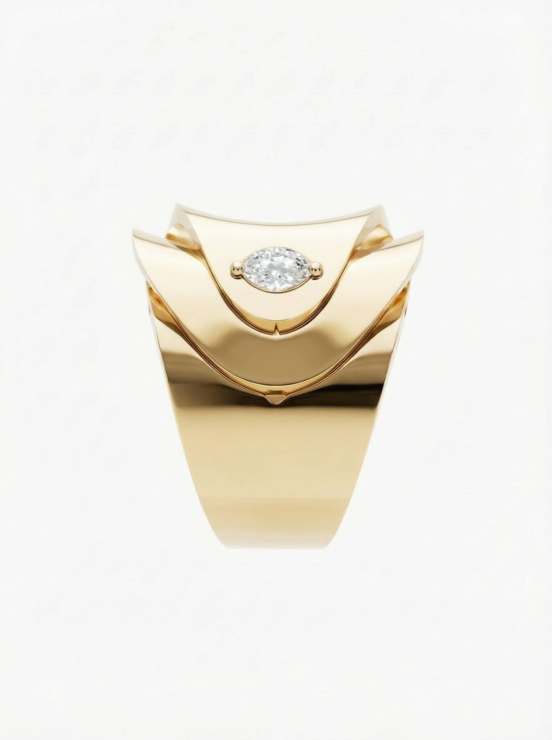 Adorned with ethically created lab-grown diamonds, individually certified by IGI or SGL to meet the highest standards of brilliance and purity. The diamonds are placed with precision to enhance the sculptural form, adding refined sparkle while maintaining the ring’s clean, contemporary aesthetic.