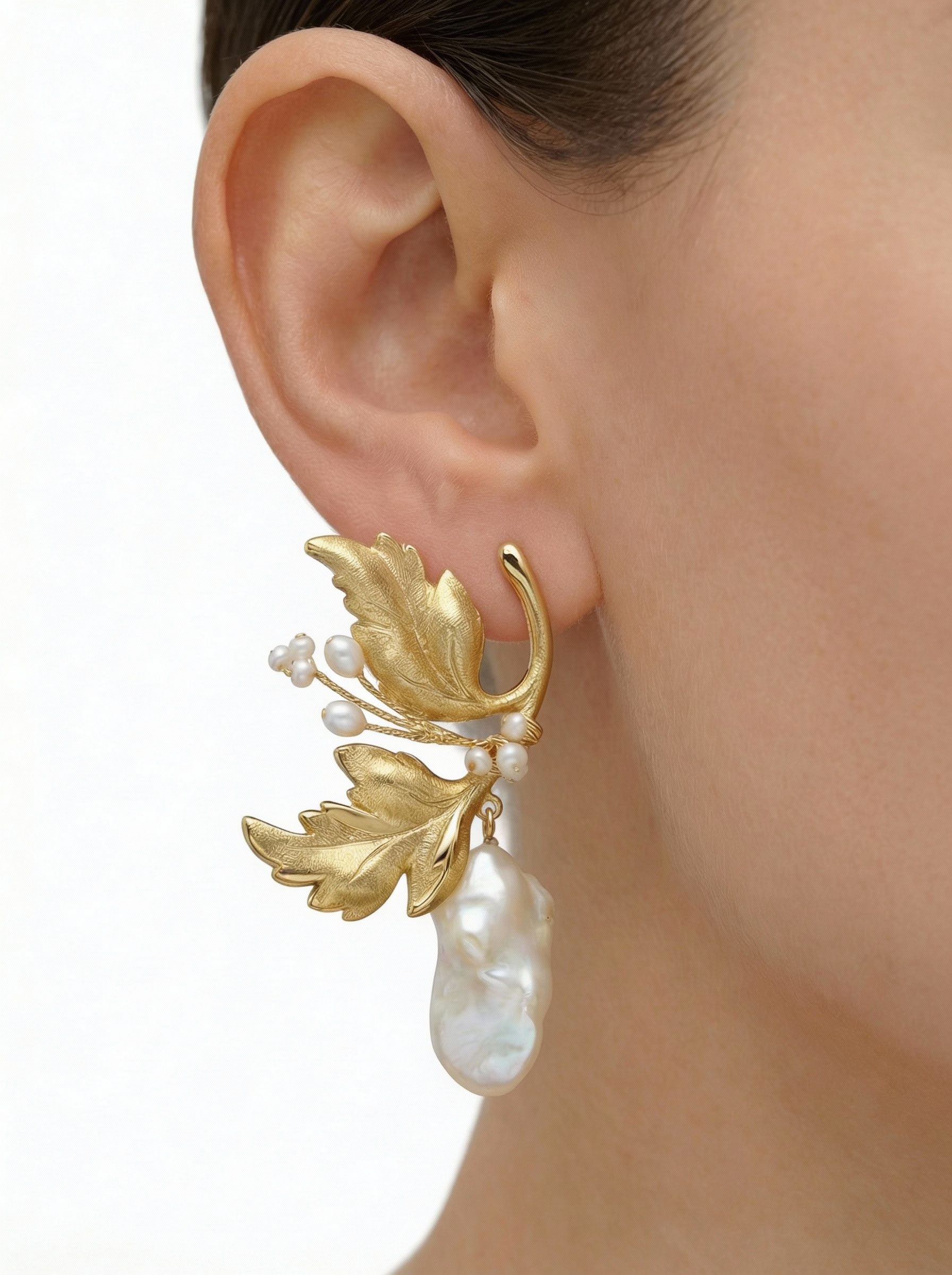 Leaf Me Be is a sculptural earring inspired by organic form and natural flow. Crafted in sterling silver gold with a soft pearl accent, this piece balances fluid design with quiet strength — effortless, expressive, and unapologetically modern.
