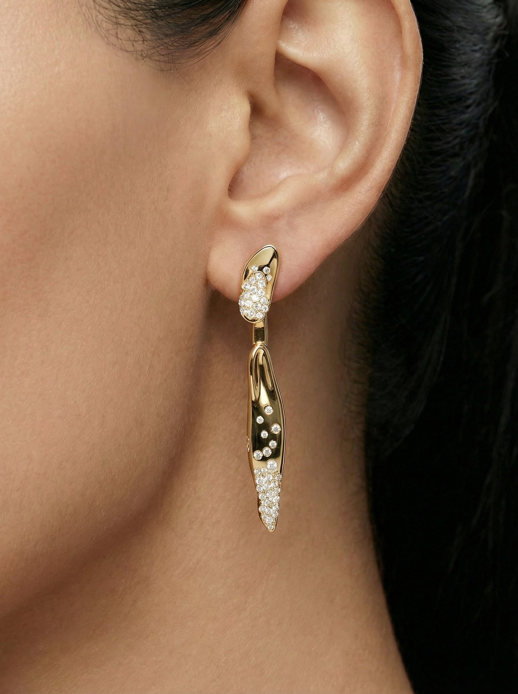 Let these be the hero. Pair with bare shoulders or structured silhouettes for maximum impact.